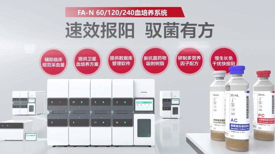 邁瑞FA-N系列全新上市:速效報陽,馭菌有方。血培養瓶與頂尖實驗室合作,優化血培養流程效率。